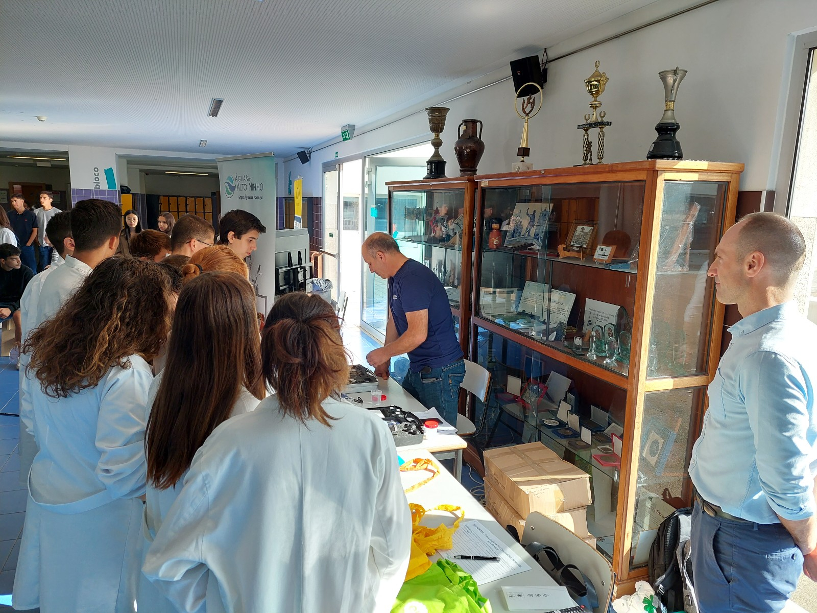 A Águas do Alto Minho dinamizou apresentações de projetos desenvolvidos no âmbito dos Sistemas de Informação Geográfica, focando-se nas suas diversas valências, fazendo demonstração in loco da Aplicação de Realidade Aumentada, estando ainda presente com atividades práticas no âmbito da qualidade da água com o Plano de Controlo Operacional desenvolvido internamente na Águas do Alto Minho. Neste Plano de Controlo, que complementa o controlo analítico desenvolvido externamente por Laboratórios Acreditados e Aptos pela ERSAR, demonstraram-se, na vertente analítica, as medições de cloro livre em água da rede pública, de condutividade ou pH em água da rede e engarrafada e da turvação de água da rede e de água de lavagem das mãos (ligeiramente suja), fomentando, desta forma, o envolvimento da comunidade escolar.