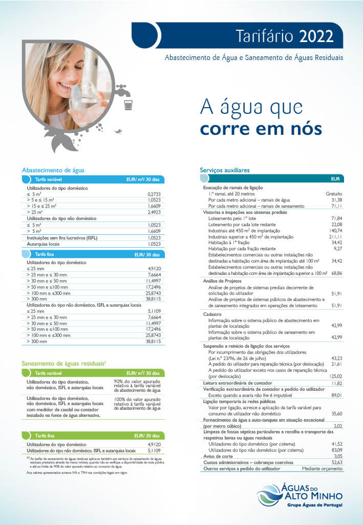 O tarifário aprovado para 2024, com entrada em vigor a 1 de janeiro de 2024, pode ser consultado na seguinte ligação: